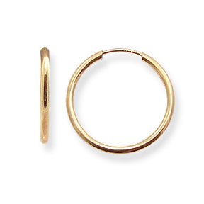 Medium to Large (M/L) Size 14k Gold Endless 2mm thick Hoop Earrings 1 1/2" (1.5" or 38mm diameter) Product Description:
