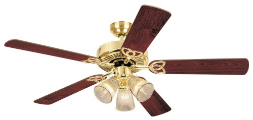 Buy Westinghouse 78043 Vintage Three-Light 52-Inch Five Blade Ceiling Fan, Polished Brass with Frosted Ribbed ShadesWestinghouse 78043 Vintage Three-Light 52-Inch Five Blade Ceiling Fan, Polished Brass with Frosted Ribbed Shades Product Description: