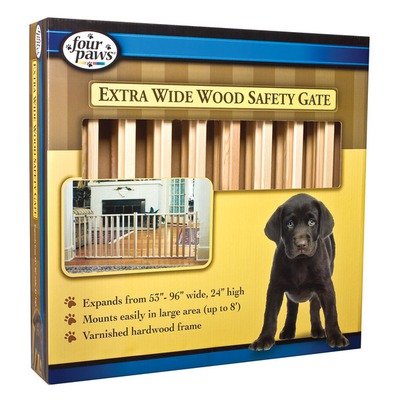 57220 Features: -Vertical wood slat gate.-Extra wide gate mounts easily in large doorways.-Varnished wood frame for aesthetic value.-Dimension: 25" H x 26" W x 4" D.
