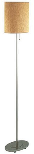 Simple but packing a notable punch, this floor lamp can go just about anywhere. A polished steel body is wonderfully offset by the rattan shade. The 100 watt A Type bulb that is needed will give off great light for any corner or even to read a book.