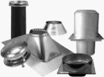 8" Complete Flat Ceiling Chimney Kit, Includes Round Top, Storm Collar, Flashing, Attic Insulation Shield, Finish Support Package, & Smoke Adapter With Coupler.