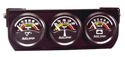 Auto Meter 1-1/2 inch (38.1 millimeter) Short Sweep Electric Three-Gauge Console (Oil/volt/Water) features advanced 90 degree air core movements and simple three wire installation characterize these high performance instruments. Electric sending units keep hazardous fluids in the engine compartment sending collected data through an electrical signal to quick reacting, precise air core movements to give you all the information that you need and nothing that you don’t. Includes 1/4 inch, 3/8 inch and 1/2 inch NPT adapter/fitting.