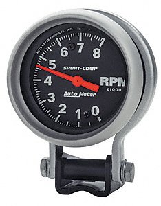 Auto Meter 2-5/8 inch (66.7mm) Tachometer Mini Competition, 8,000 RPM, Sport-Comp are mountable in every conceivable position and the versatility and durability of the Pedestal Mount tachs have made them a race proven favorite for over 30 years. These tachs offer a variety of performance oriented options from shift lights to memory recall functions, coupled with a trade marked aluminum and rubber shock strap design for the best vibration protection available. Operates on 4, 6, or 8 cylinder engines with points, electronic, and most 12V high performance racing ignitions.